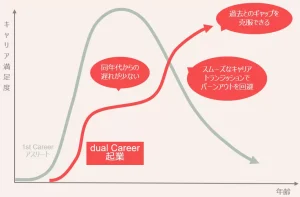 キャリアスタートの遅れについては国や各競技団体も各種の支援策を打ち出しています。さらに近年はバーンアウトおよび過去の栄光とのギャップの解決策として、アスリートが競技キャリア継続中の早い段階でセカンドキャリアの準備をスタートさせる デュアルキャリアという考え方が推進されています。